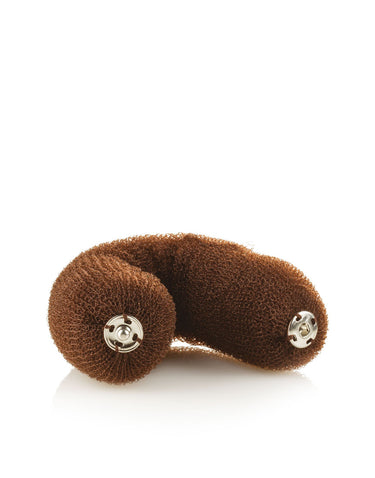 HAIR BUN S GUMBOM Ø 200 mm u smeđoj boji omogućuje jednostavno i čvrsto oblikovanje punđe bez klizanja i dodatnih ukosnica. Zahvaljujući integriranim gumbima, punđa se brzo pričvršćuje i zadržava uredan izgled kroz cijeli dan. Idealno rješenje za kreiranje urednih i postojanih frizura na dugoj i srednje dugoj kosi, posebno za svečane i poslovne prilike.