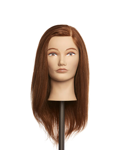 Josephine je edukacijska glava s optimalnom duljinom kose za prikaz različitih tehnika šišanja, stiliziranja i koloracije. Izrađena od 100% ljudske kose srednje tamne nijanse, omogućuje realan prikaz rezultata kod profesionalnih frizerskih tehnika. Duljina kose sprijeda 16″ i straga 10″ pruža idealnu ravnotežu između kontrole i kreativnosti, što je čini pogodnom za izradu različitih formi šišanja, rad s toplinskim alatima i kemijskim procesima. Ravna tekstura omogućuje precizno izvođenje tehnika te jasno prikazuje strukturu i završni rezultat oblikovanja.